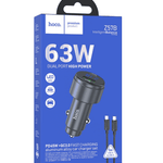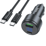 Dual port car charger set with Type-C and USB-A ports. Comes with 1m USB-C to USB-C cable.Maximum output 63W.Supports fast charging protocols.LED digital display.